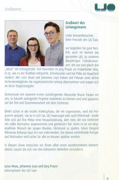 - 13.4.2016 - Das neue Leitungsteam des LJO