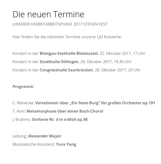 Künstlerischer Leiter LJO- 31.8.2015 - Der Webmaster informiert: