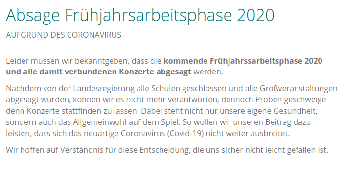 - 19.03.2020 - Absage 77. Arbeitsphase Ostern 2020
